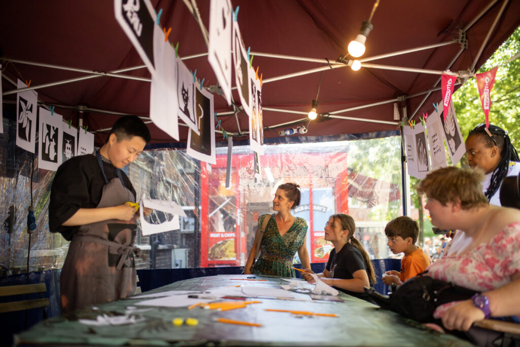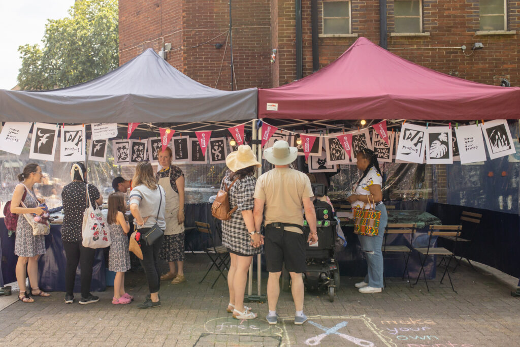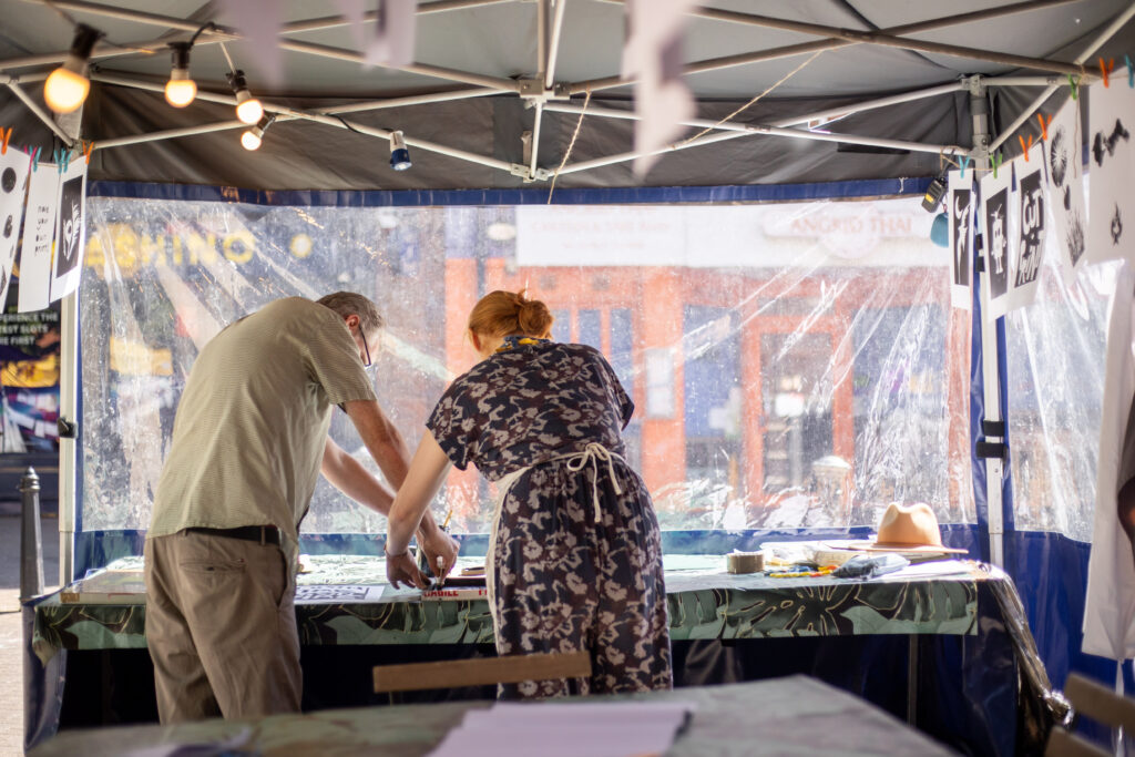 The Imagination Factory is a DIY silk screening stall for markets and events. It was launched in 2022 at OffBeat Oxford.